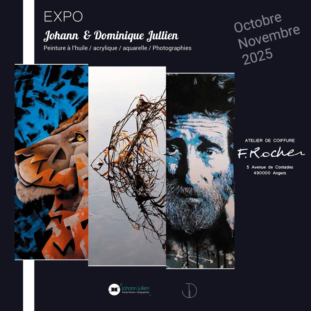 Exposition à l’atelier de coiffure F.Rocher Angers Peinture à l’huile, acrylique, aquarelle, photographies.